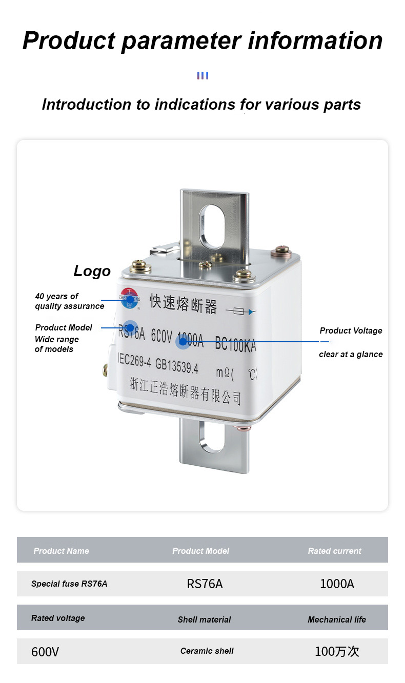 RS76A 600V 100A BC100KA Fuse Links များသည် စက်မှုလုပ်ငန်းနှင့် လုပ်ငန်းသုံး ဓာတ်အားဖြန့်ဖြူးရေးစနစ်များအတွက် ဒီဇိုင်းထုတ်ထားသော စွမ်းဆောင်ရည်မြင့် လျှပ်စစ်ကာကွယ်ရေး အစိတ်အပိုင်းများဖြစ်သည်။ ဗို့အားအဆင့်သတ်မှတ်ချက် 600V နှင့် 100A ၏ လက်ရှိစွမ်းရည်ဖြင့်၊ ဤဖျူးစ်လင့်ခ်များသည် ဝန်ပိုအားနှင့် ဝါယာရှော့မဖြစ်စေရန် ယုံကြည်စိတ်ချရသော ဆားကစ်များကို အာမခံပါသည်။ RS76A 600V 100A BC100KA Fuse Links များသည် 100kA ဖောက်ထွင်းနိုင်မှု ပါ၀င်သောကြောင့် ၎င်းတို့သည် မြင့်မားသော အမှားအယွင်းများ ဖြစ်ပေါ်နိုင်သည့် အက်ပလီကေးရှင်းများအတွက် လိုအပ်ချက်များအတွက် သင့်လျော်စေသည်။ ဤဖျူးလင့်ခ်များသည် တာရှည်ခံမှု၊ ဘေးကင်းမှုနှင့် တပ်ဆင်ရလွယ်ကူစေရန်အတွက် တည်ဆောက်ထားပြီး သင့်လျှပ်စစ်ပစ္စည်းများအတွက် အကောင်းဆုံးကာကွယ်မှုပေးစွမ်းသည်။ တည်ငြိမ်ပြီး ထိရောက်သော ပါဝါစနစ်လည်ပတ်မှုအတွက် RS76A 600V 100A BC100KA Fuse Links ကို ရွေးချယ်ပါ။